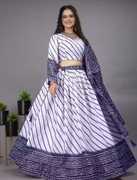 Floral Print Semi Stitched Lehenga Choli (White, Purple)