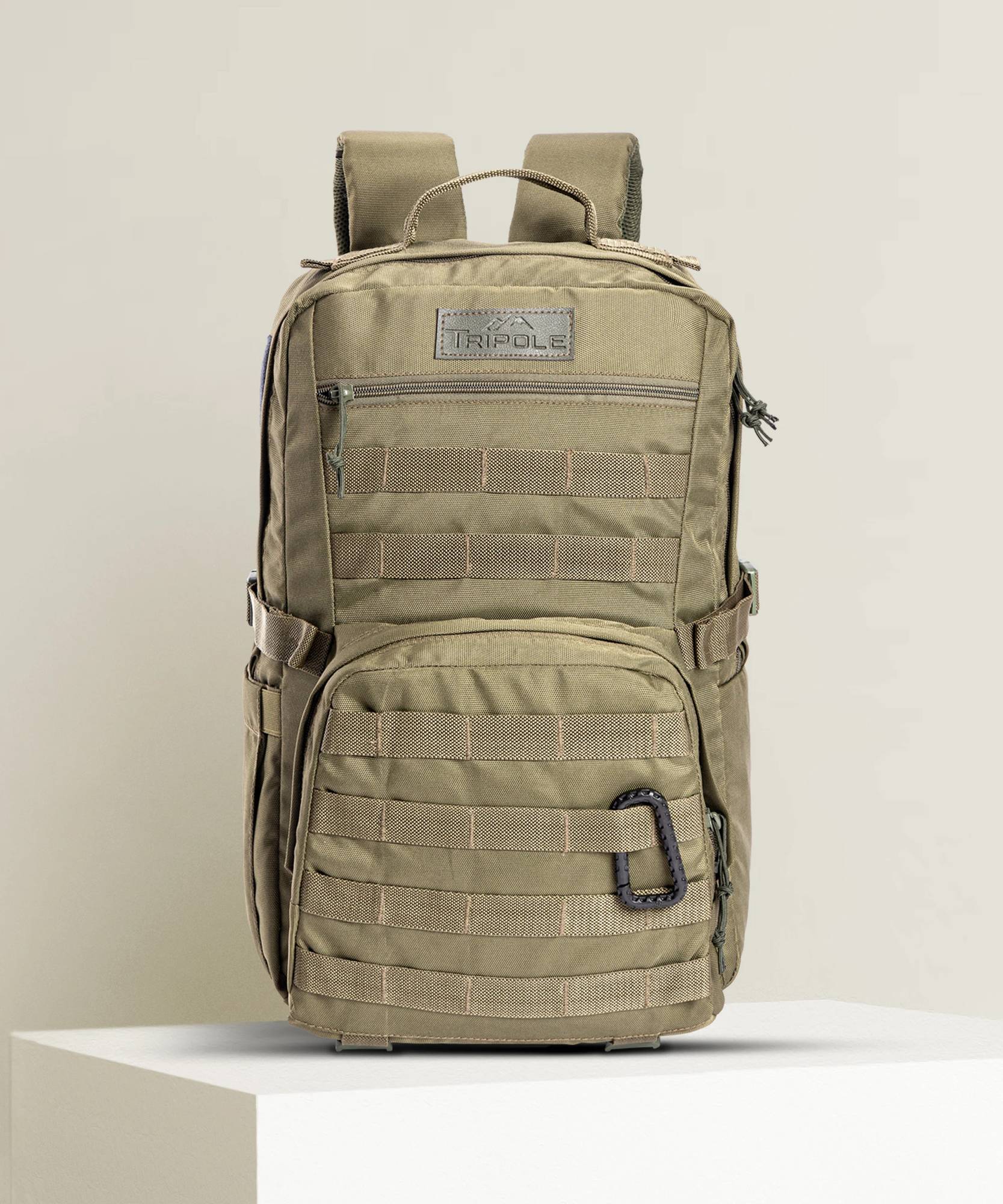 The Tripole Captain is a multi-utility tactical backpack designed for day hikes in the fields. The design consists of MOLLE (Modular Lightweight Load-Carrying Equipment) webbing that can be used to attached complementary attachments to increase space. Utility straps on the side and bottom can further be used to carry technical gear. Given its attractive and daily utility features, it can also be carried to the gym or even used as a school bag. It has been designed for daily use utility with features like a hidden pocket on the back, anti-theft pocket on the side, side pocket for water storage, internal sections for segregating stuff and card pocket organizer in the front bottom pocket.