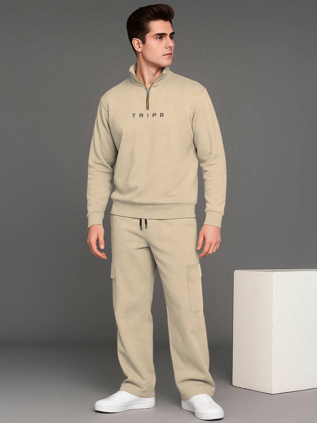 Upgrade your downtime with the TRIPR Men’s Cargo Nightsuit. Crafted from a premium cotton blend, this set features a contemporary half-zip sweatshirt paired with baggy cargo joggers for a look that’s as stylish as it is comfortable. Whether you're unwinding at home or heading out for a quick coffee run, this monochromatic set offers a relaxed, street-ready silhouette.