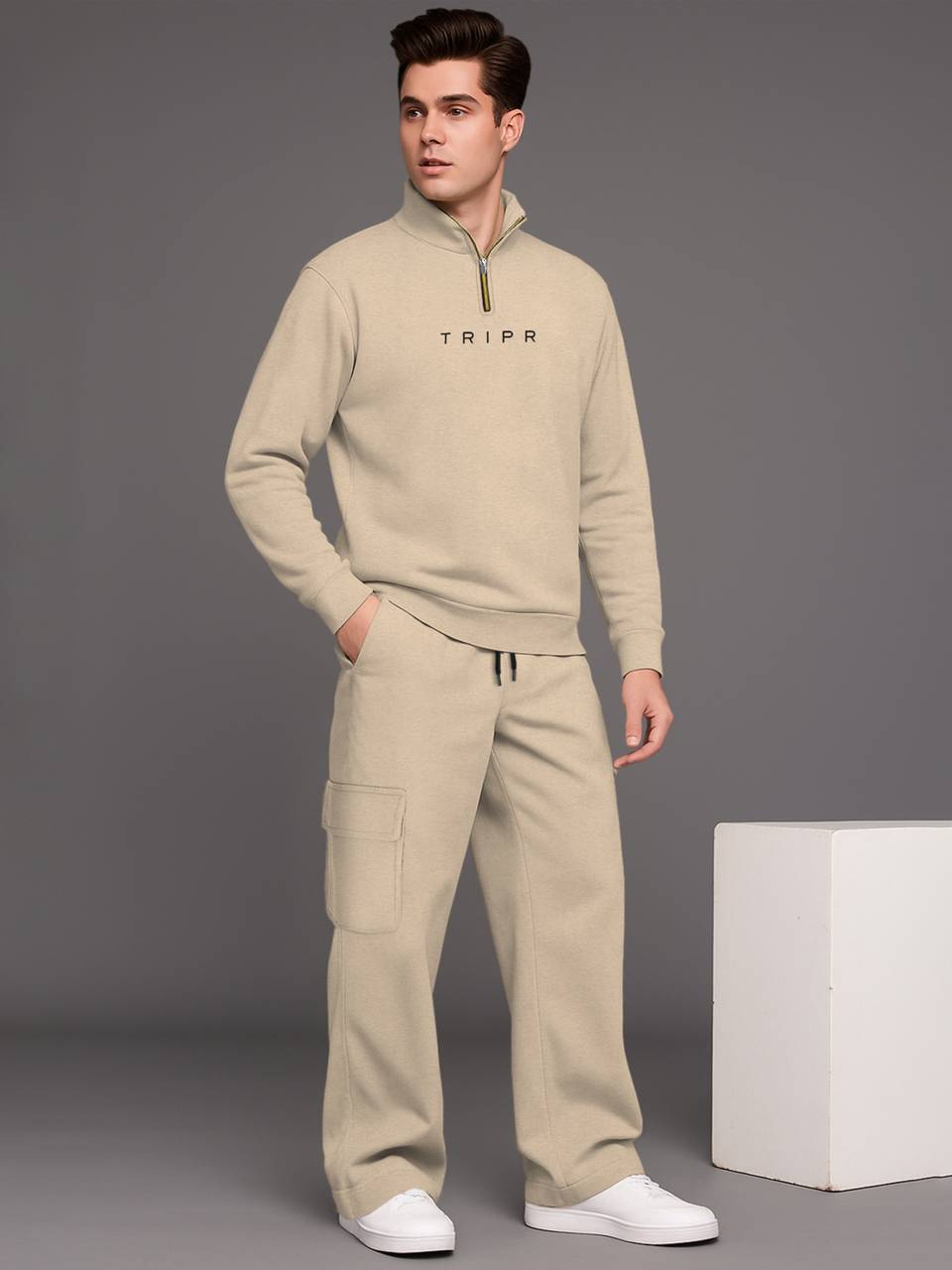 Stay on-trend and comfortable with this stylish TRIPR full sleeve high neck zipper sweaterr, perfectly paired with baggy cargo pants. The sweaterr features a sleek zip-up neckline that adds a sporty, modern touch, while its relaxed fit ensures all-day comfort. The TRIPR cargo pants come with a loose, baggy silhouette and multiple utility pockets, offering the ideal combination of function and fashion. Whether you're heading out for streetwear-inspired looks, traveling, or enjoying a laid-back weekend, this outfit delivers a bold blend of contemporary style and everyday practicality - only from TRIPR.A plain baggy tracksuit typically consists of a loose-fitting, unadorned Sweatshirt and matching pants, usually made from soft, comfortable materials like cotton blends.