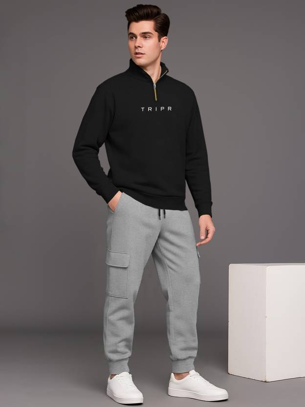Stay on-trend and comfortable with this stylish TRIPR full sleeve Henley Neck perfectly paired with baggy cargo pants. The Sweatshirt features a sleek zip-up neckline that adds a sporty, modern touch, while its relaxed fit ensures all-day comfort. The TRIPR cargo pants come with a loose, baggy silhouette and multiple utility pockets, offering the ideal combination of function and fashion. Whether you're heading out for streetwear-inspired looks, traveling, or enjoying a laid-back weekend, this outfit delivers a bold blend of contemporary style and everyday practicality - only from TRIPR.A Cargo plain baggy tracksuit typically consists of a loose-fitting, unadorned Sweatshirt and matching pants, usually made from soft, comfortable materials like cotton blends.
