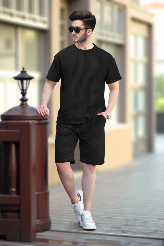 Men Night Suit Set Black Solid