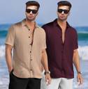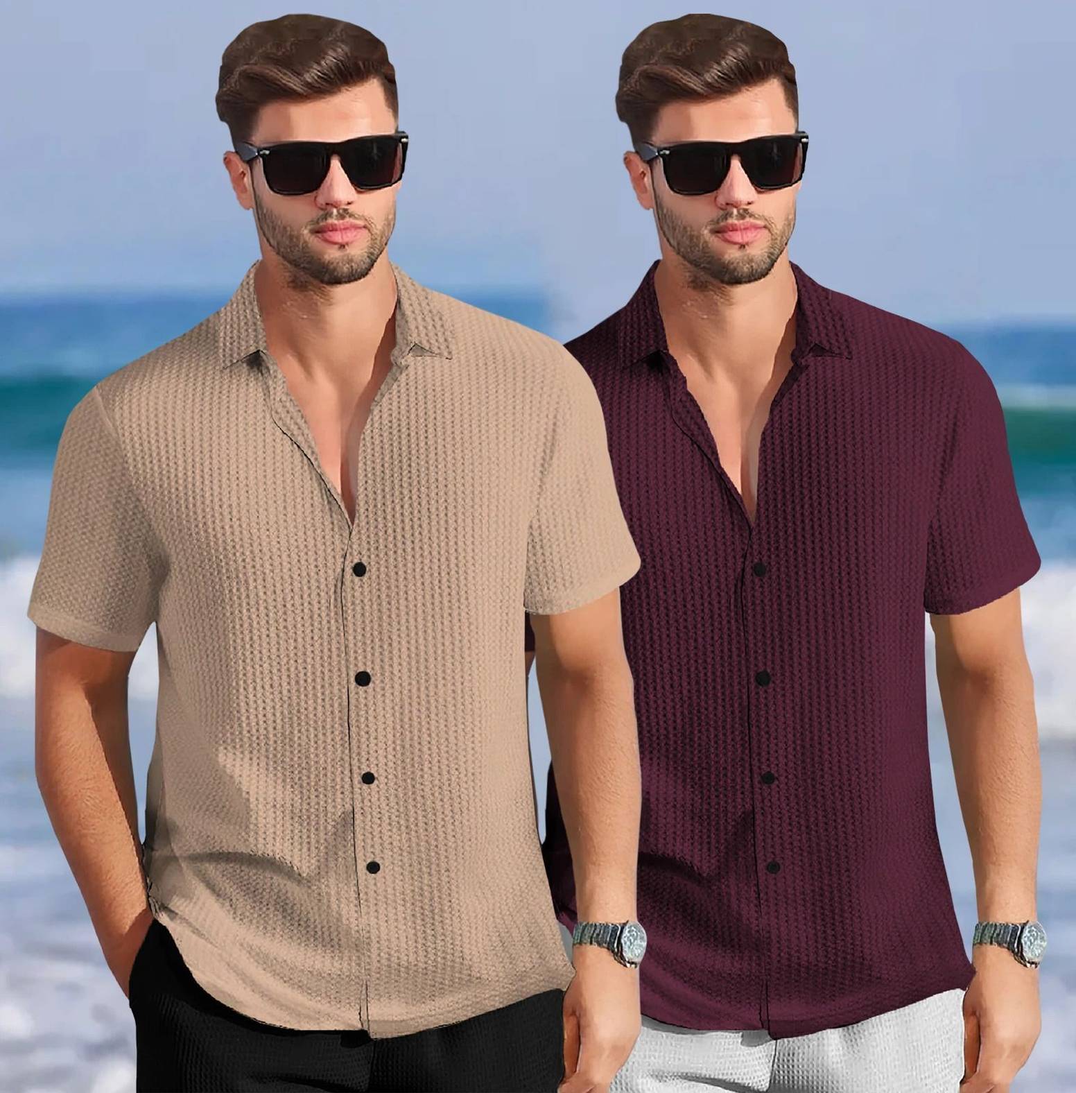 TRIPR Men Solid Casual Beige, Maroon Shirt (Pack of 2)