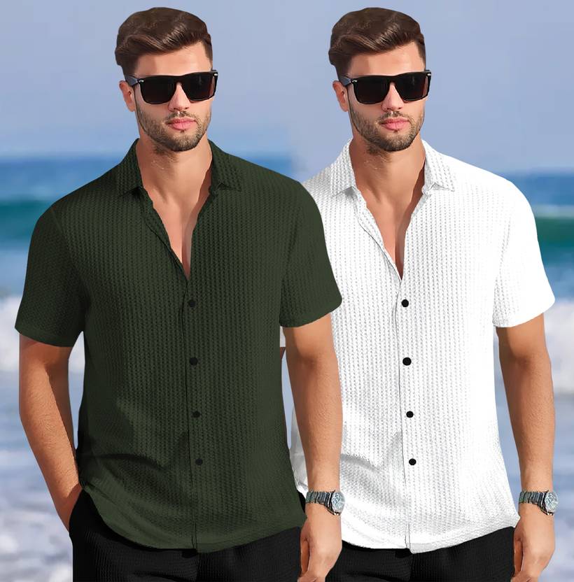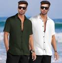 TRIPR Men Solid Casual Dark Green, White Shirt (Pack of 2)
