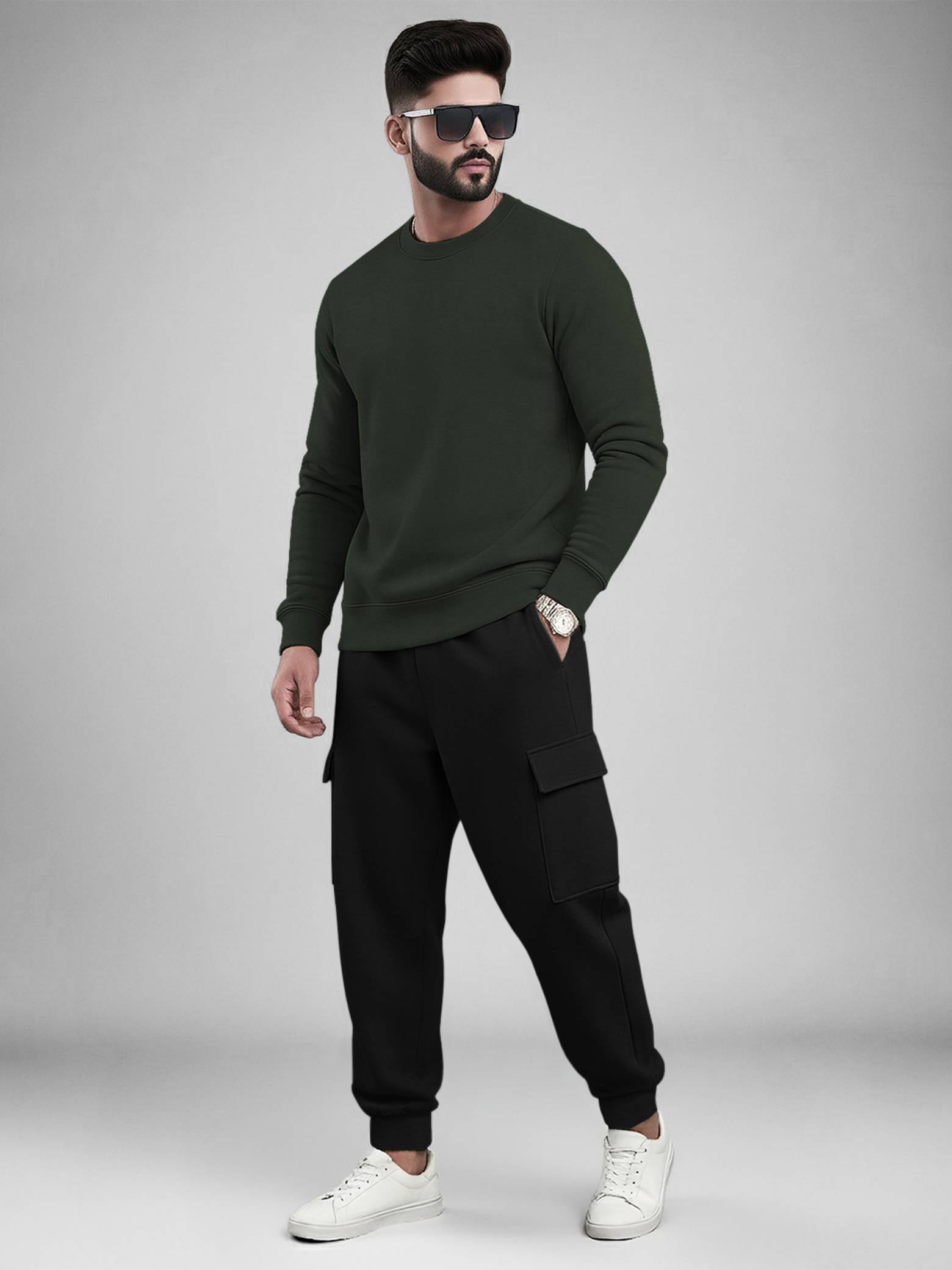 TRIPR Men Solid Dark Green, Black Night Suit Set
