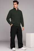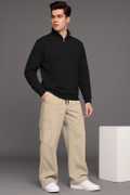 Step up your casual style with this signature look from TRIPR. Featuring a high neck sweatshirt with a sleek front zipper, this piece delivers a perfect mix of comfort and modern edge. Paired with loose-fit cargo pants designed with spacious side pockets, this outfit offers effortless mobility and everyday functionality. Whether you're heading out or lounging in, this TRIPR combo is built for all-day comfort and street-smart appeal.