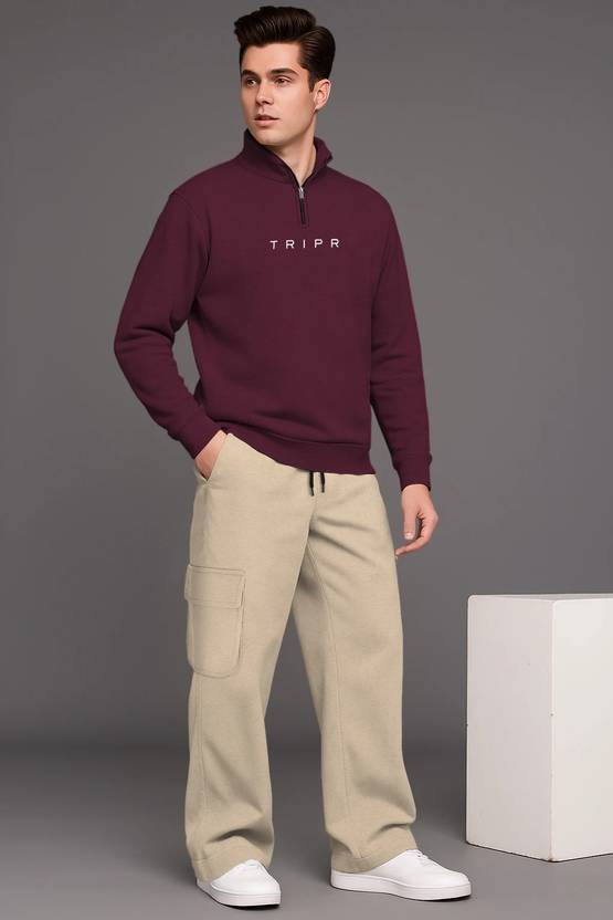 Step up your casual style with this signature look from TRIPR. Featuring a high neck sweatshirt with a sleek front zipper, this piece delivers a perfect mix of comfort and modern edge. Paired with loose-fit cargo pants designed with spacious side pockets, this outfit offers effortless mobility and everyday functionality. Whether you're heading out or lounging in, this TRIPR combo is built for all-day comfort and street-smart appeal.