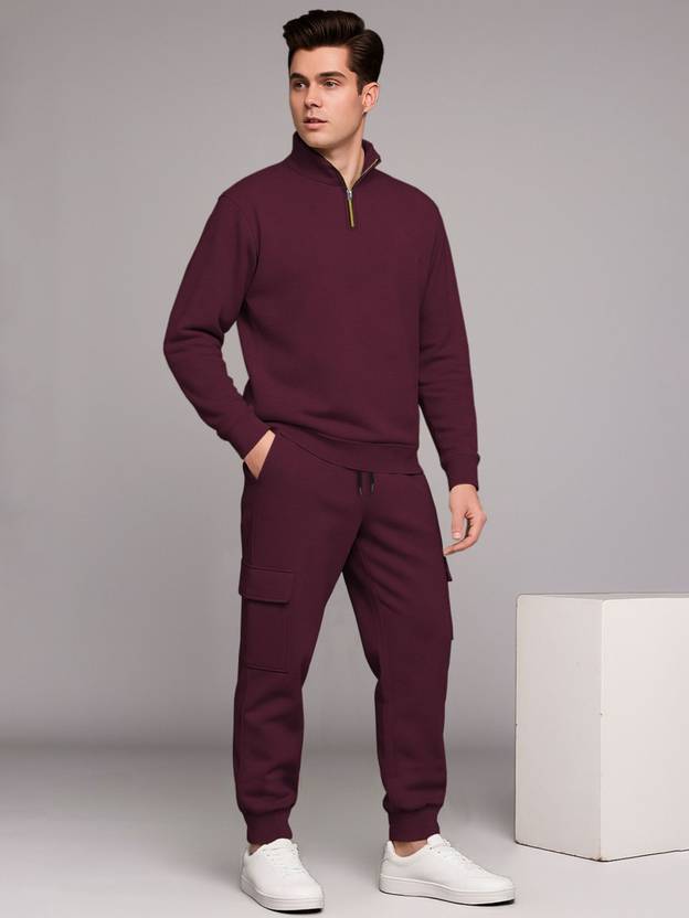 Men Night Suit Set Maroon Solid