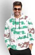 TRIPR Printed Men Hooded Neck White, Blue T-Shirt