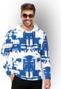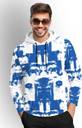 TRIPR Printed Men Hooded Neck White, Blue T-Shirt