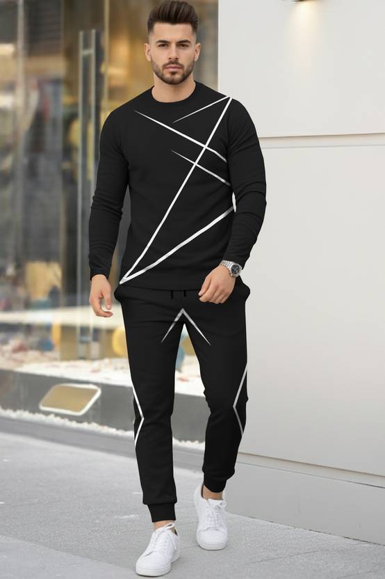Upgrade your streetwear game with the TRIPR Men’s Geometric Graphic Tracksuit. This matching set combines a sleek, modern aesthetic with all-day comfort, making it a must-have for your casual wardrobe. Featuring a bold, white shard-style graphic against a deep black base, this tracksuit is designed for those who want to stand out effortlessly.