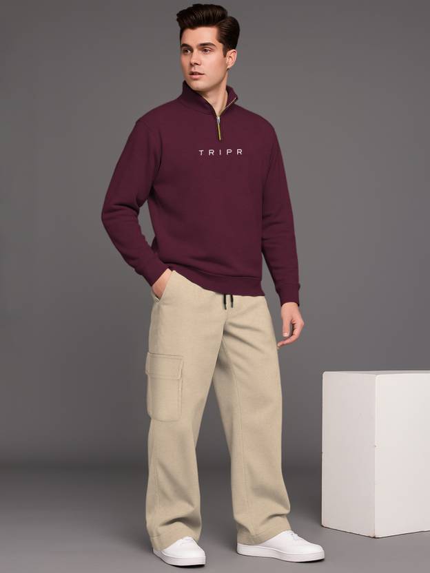 Stay on-trend and comfortable with this stylish TRIPR full sleeve high neck zipper sweatshirt, perfectly paired with baggy cargo pants. The sweatshirt features a sleek zip-up neckline that adds a sporty, modern touch, while its relaxed fit ensures all-day comfort. The TRIPR cargo pants come with a loose, baggy silhouette and multiple utility pockets, offering the ideal combination of function and fashion. Whether you're heading out for streetwear-inspired looks, traveling, or enjoying a laid-back weekend, this outfit delivers a bold blend of contemporary style and everyday practicality - only from TRIPR.