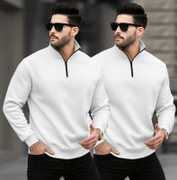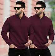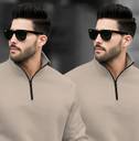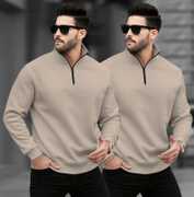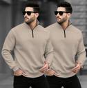 TRIPR Solid Collared Neck Casual Men Beige Sweater