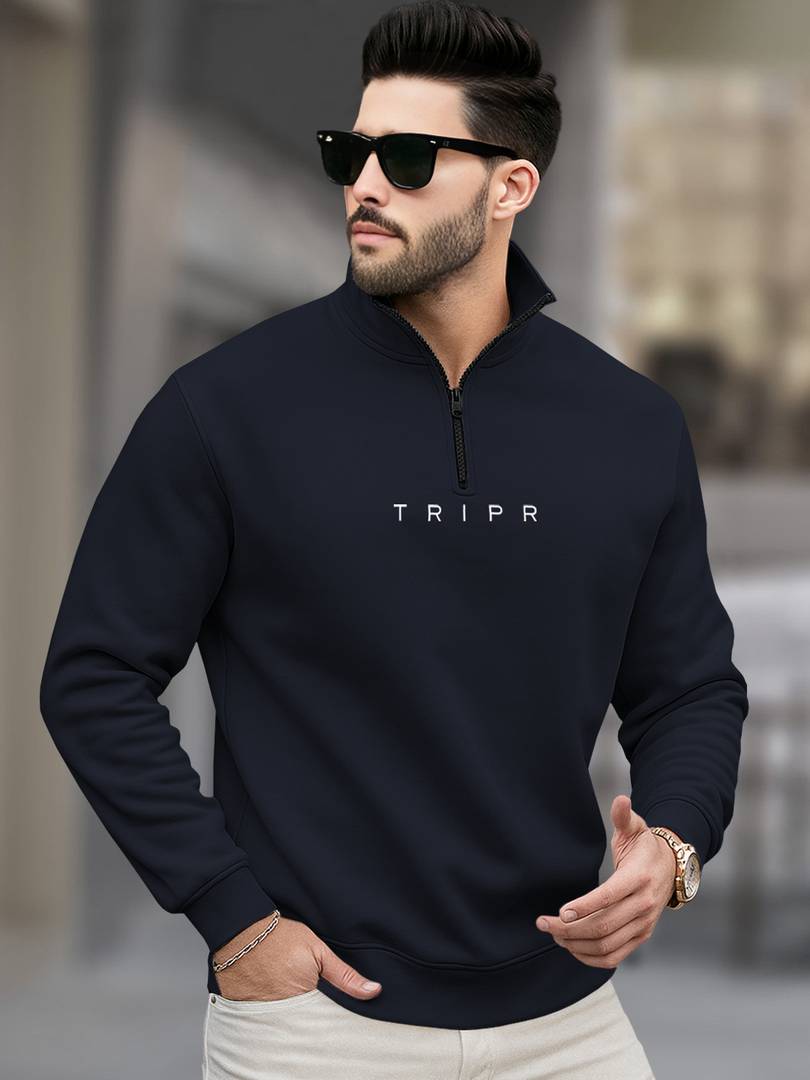 TRIPR Solid High Neck Casual Men Blue Sweater