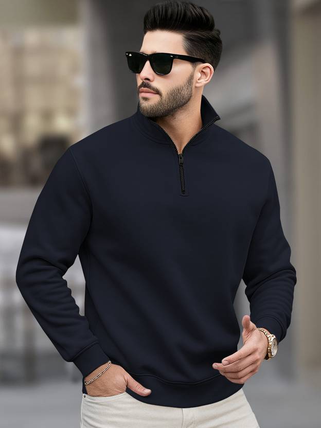 TRIPR Solid High Neck Casual Men Blue Sweater