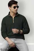 TRIPR Solid High Neck Casual Men Dark Green Sweater