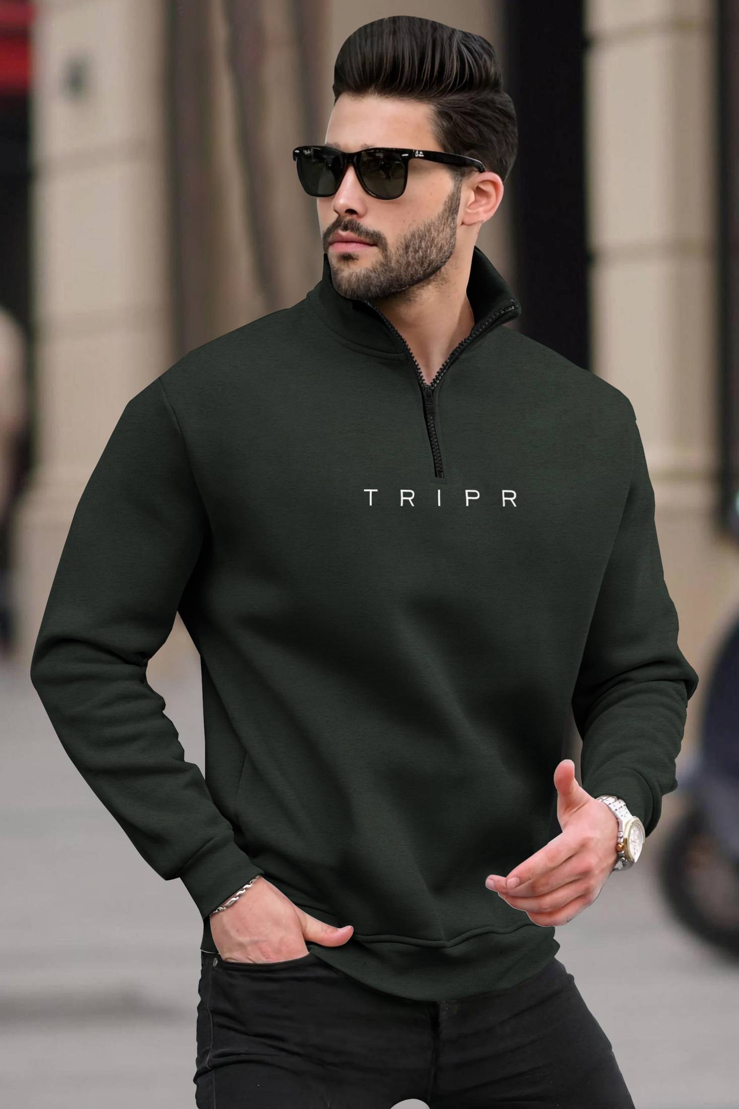 TRIPR Solid High Neck Casual Men Green Sweater