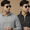 High quality Designer High neck Sweater Full sleeves direct from the manufacturers. 100% Pure combed 280 GSM Cotton used. Gives you perfect fit, comfort feel and handsome look.