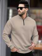 TRIPR Solid High Neck Casual Men Grey Sweater