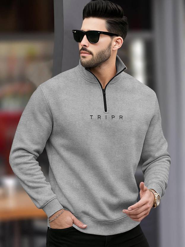 TRIPR Solid High Neck Casual Men Grey Sweater