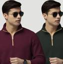 TRIPR Solid High Neck Casual Men Maroon, Green Sweater