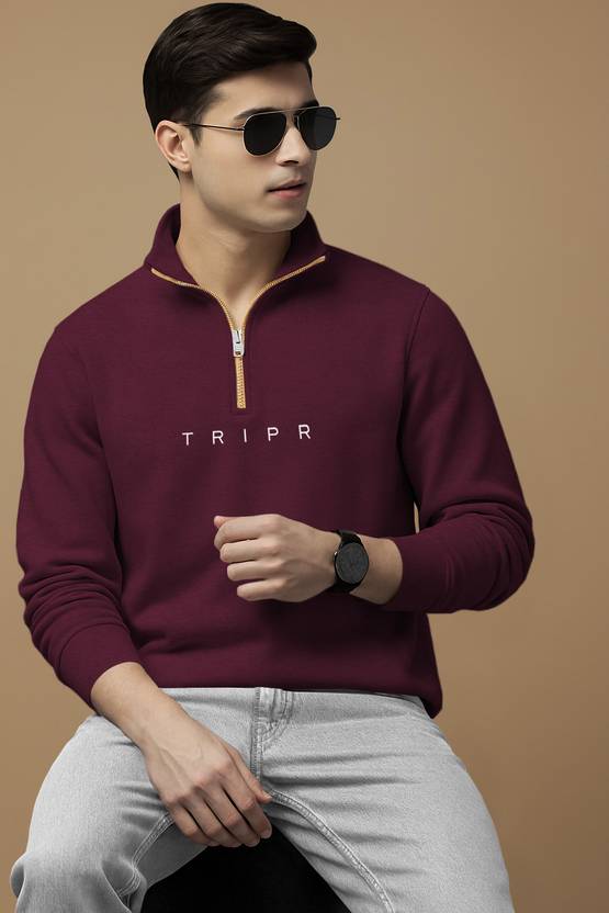 TRIPR Solid High Neck Casual Men Maroon Sweater