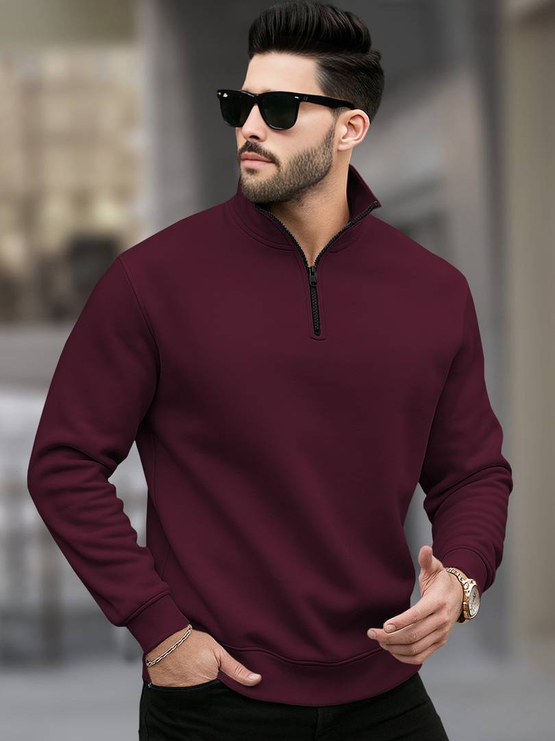 TRIPR Solid High Neck Casual Men Maroon Sweater