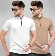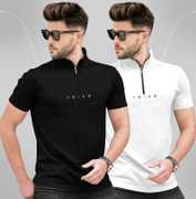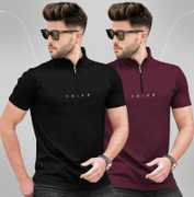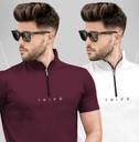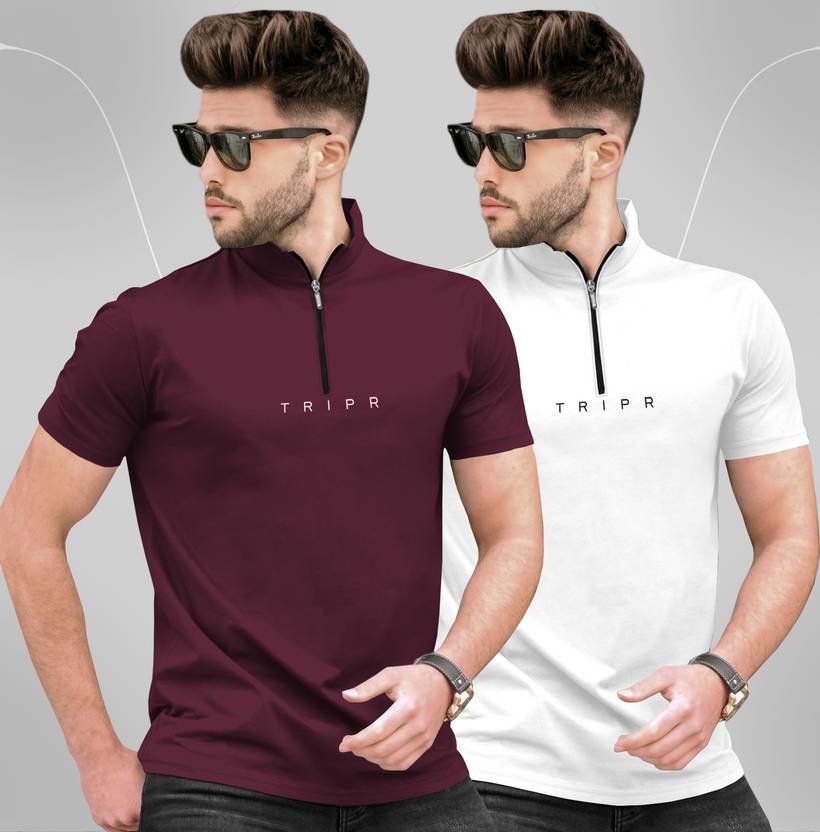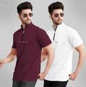 TRIPR Solid Men Henley Neck Maroon, White T-Shirt