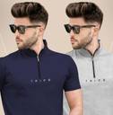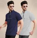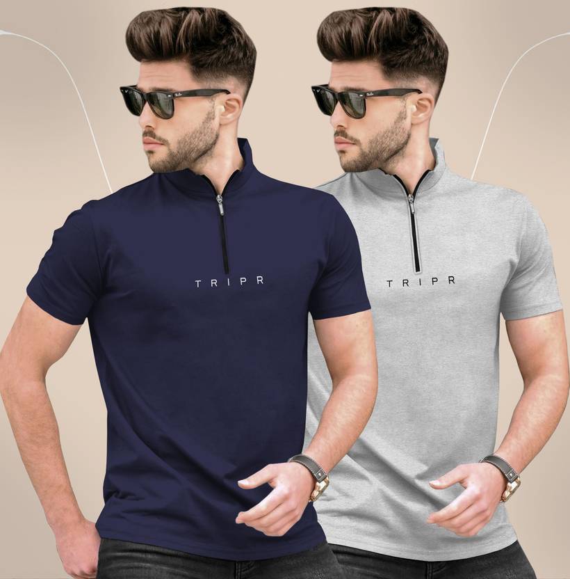 TRIPR Solid Men Henley Neck Navy Blue, Grey T-Shirt