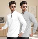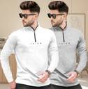 TRIPR Solid Men Henley Neck White, Grey T-Shirt