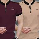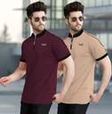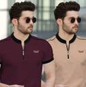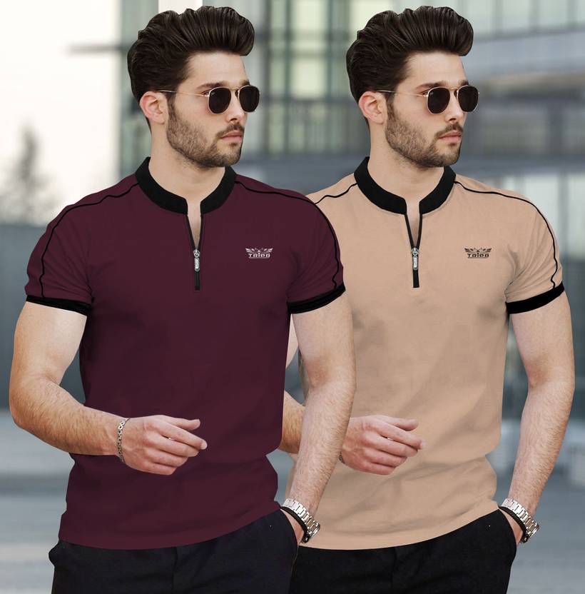 TRIPR Solid Men Mandarin Collar Maroon, Beige T-Shirt