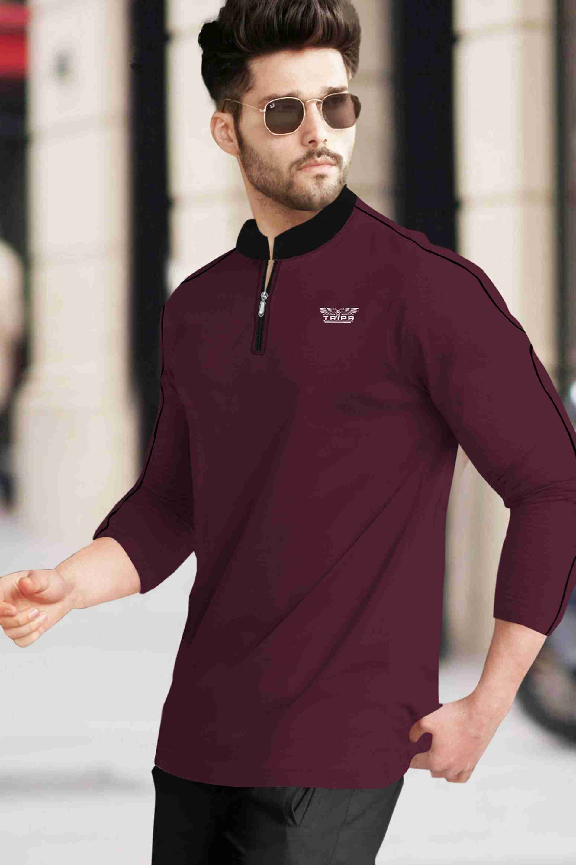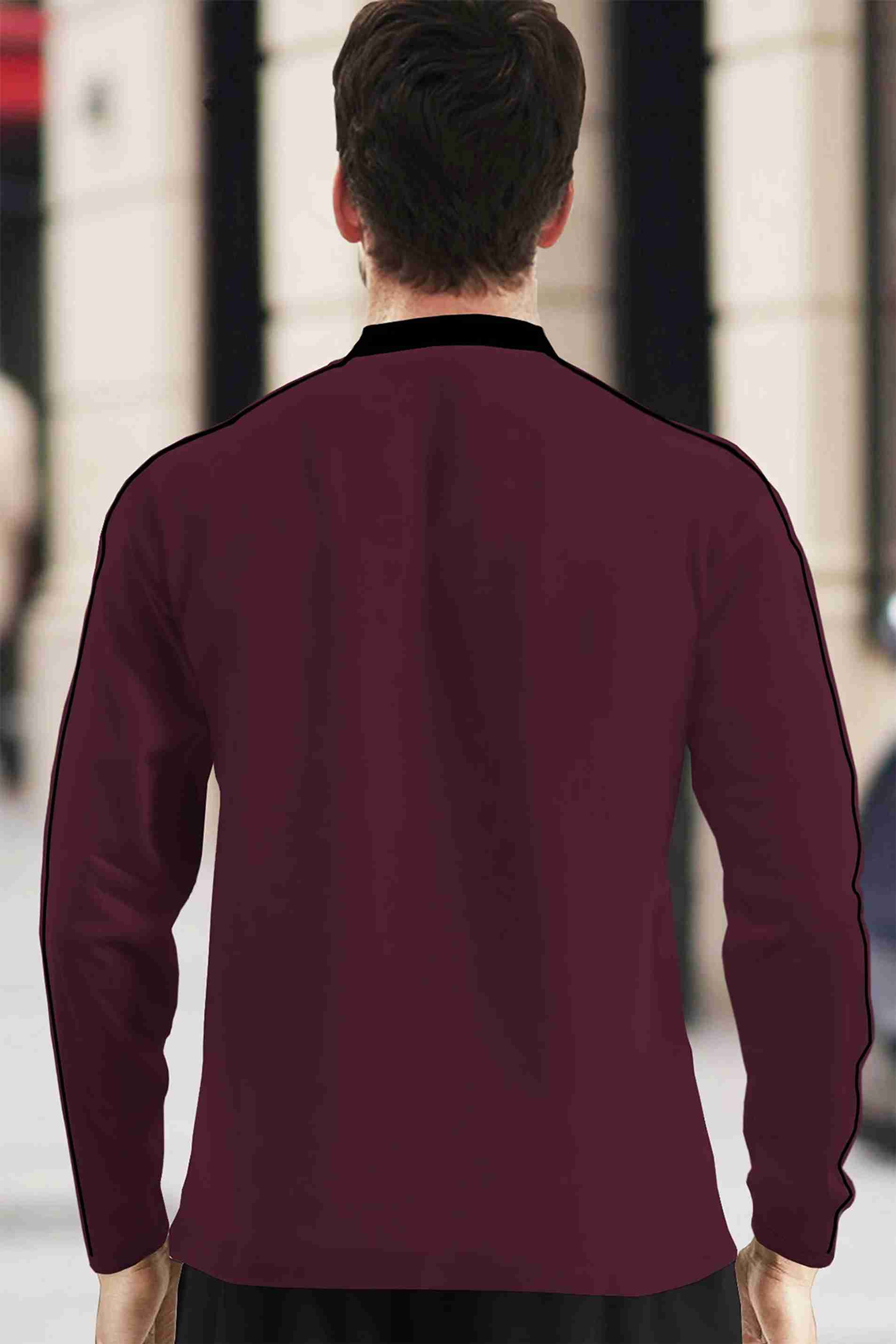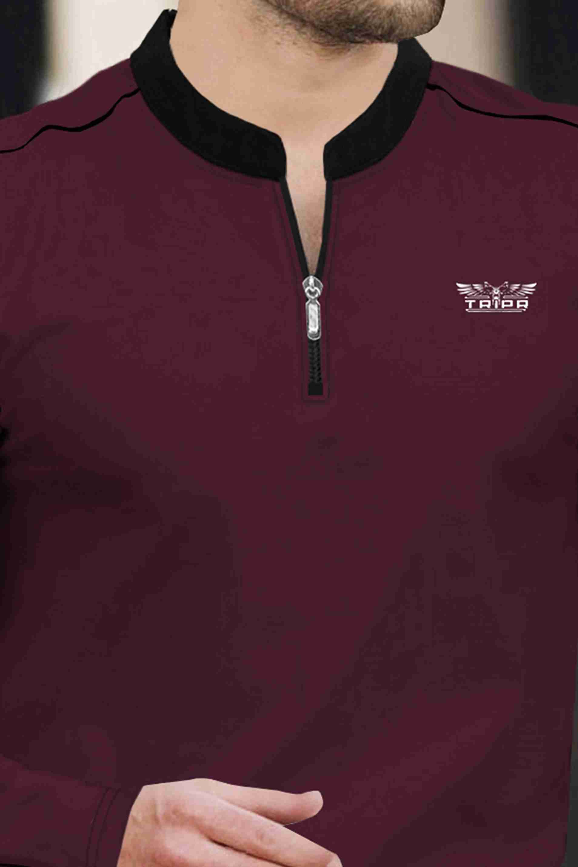 Men Solid Mandarin Collar Cotton Blend Maroon, Black T-Shirt