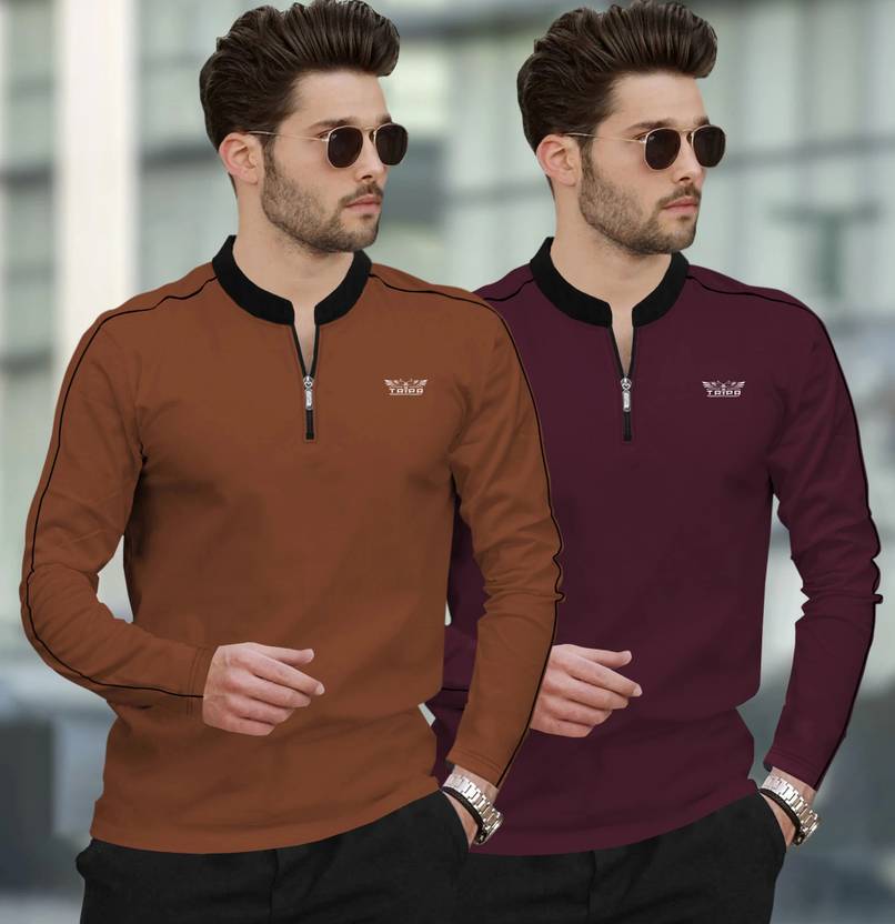 Switch up your everyday wardrobe with this trending t-shirt from TRIPR. Ideal to wear for all seasons, this versatile t-shirt features a Mandarin Collar and full sleeves. Style it with a pair of straight-fit denims and white shoes to complete your outfit.