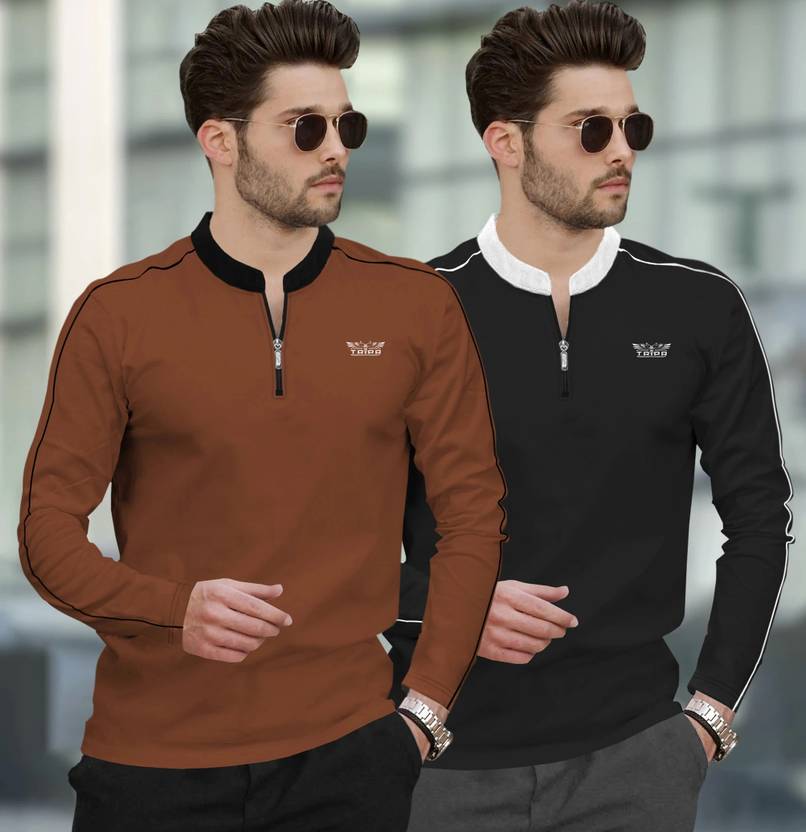 Switch up your everyday wardrobe with this trending t-shirt from TRIPR. Ideal to wear for all seasons, this versatile t-shirt features a Mandarin Collar and full sleeves. Style it with a pair of straight-fit denims and white shoes to complete your outfit.