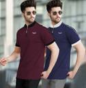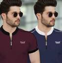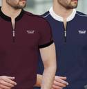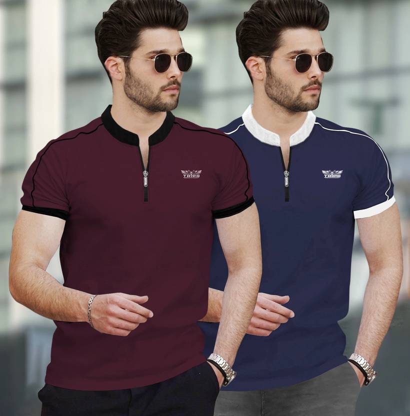 TRIPR Pack of 2 Men Solid Mandarin Collar Cotton Blend Multicolor T-Shirt