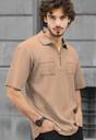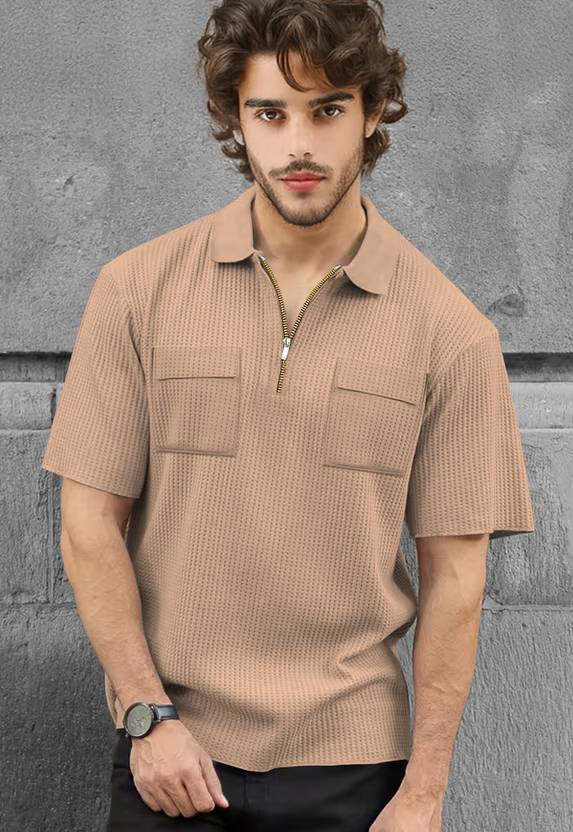TRIPR Men Solid Polo Neck Cotton Blend Beige T-Shirt
