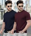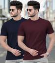 TRIPR Solid Men Round Neck Navy Blue, Maroon T-Shirt