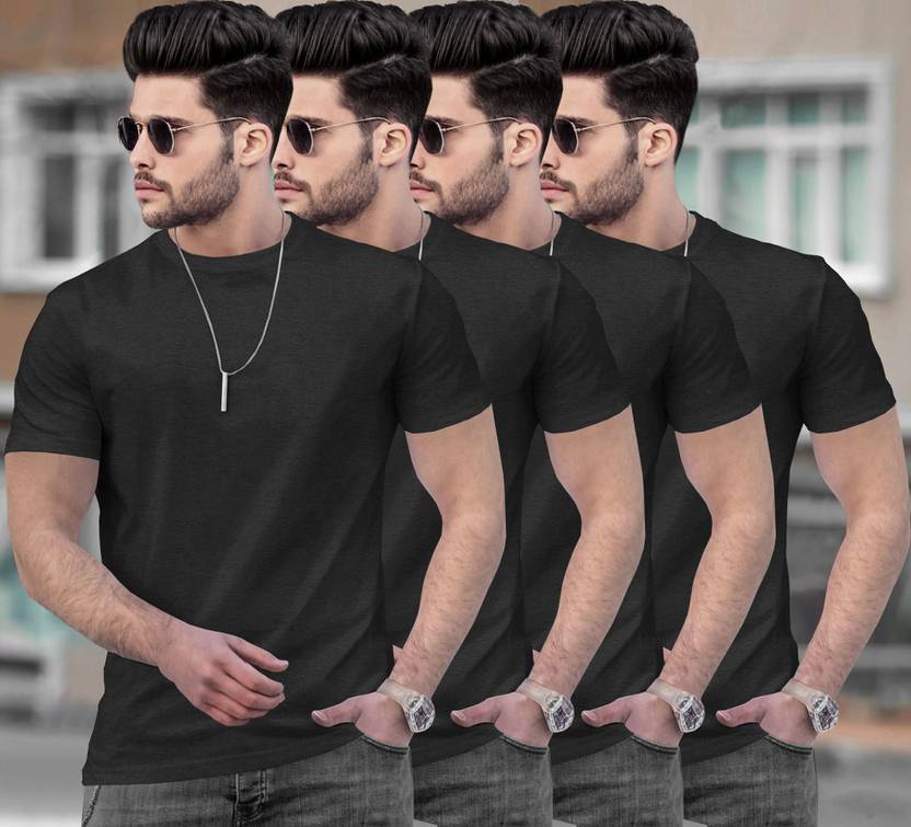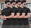 TRIPRΒ Pack of 4 Men Solid Round Neck Cotton Blend Black T-Shirt
