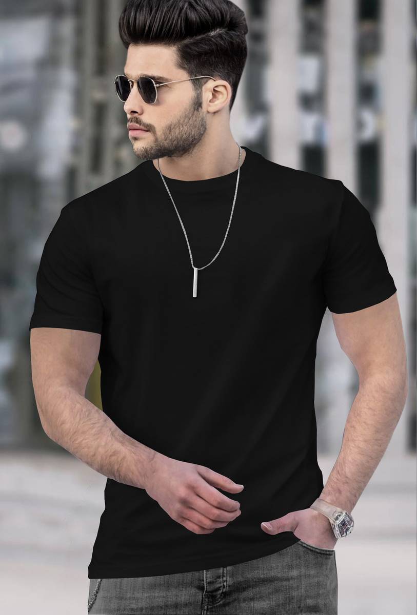 TRIPR Men Solid Round Neck Cotton Blend Black T-Shirt