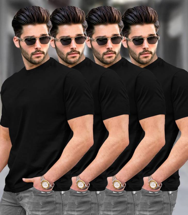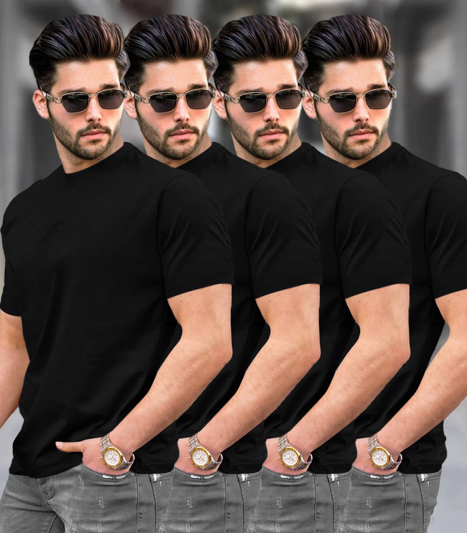 TRIPR Pack of 4 Men Solid Round Neck Cotton Blend Black T-Shirt