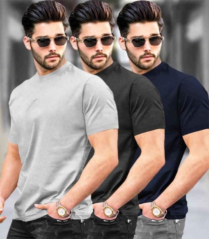 TRIPR Solid Men Round Neck Grey, Black, Navy Blue T-Shirt