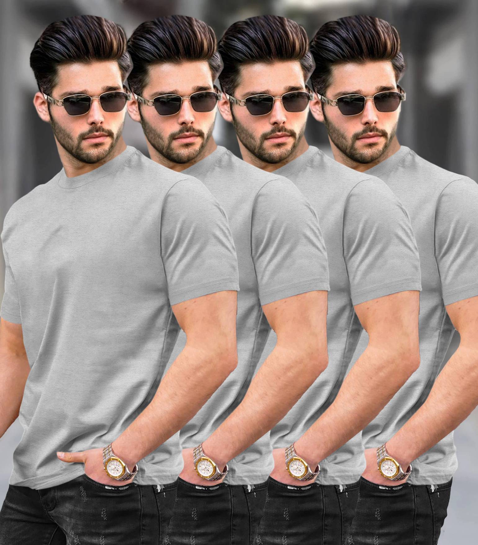 TRIPR Pack of 4 Men Solid Round Neck Cotton Blend Grey T-Shirt