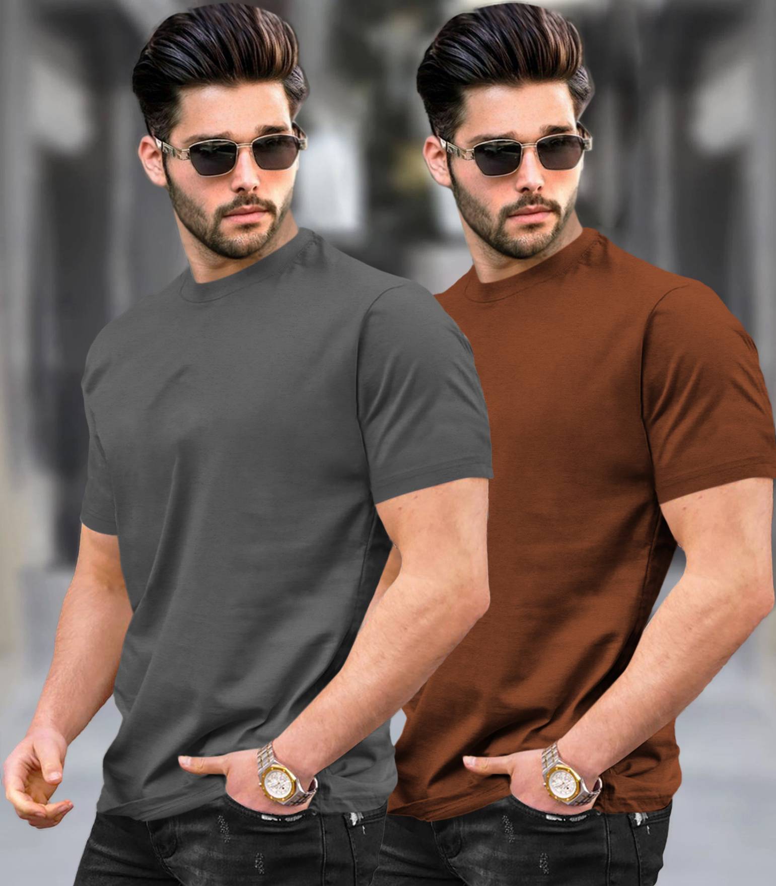 TRIPR Pack of 2 Men Solid Round Neck Cotton Blend Multicolor T-Shirt