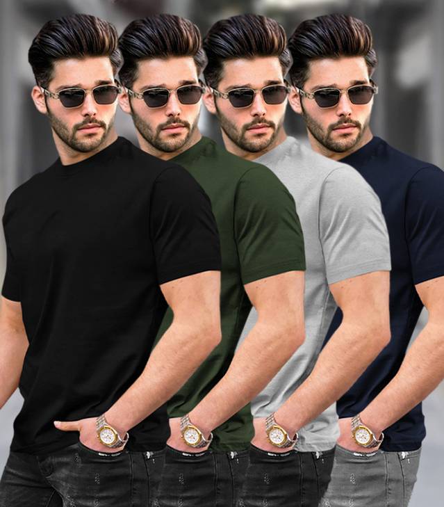 TRIPR Pack of 4 Men Solid Round Neck Cotton Blend Multicolor T-Shirt