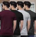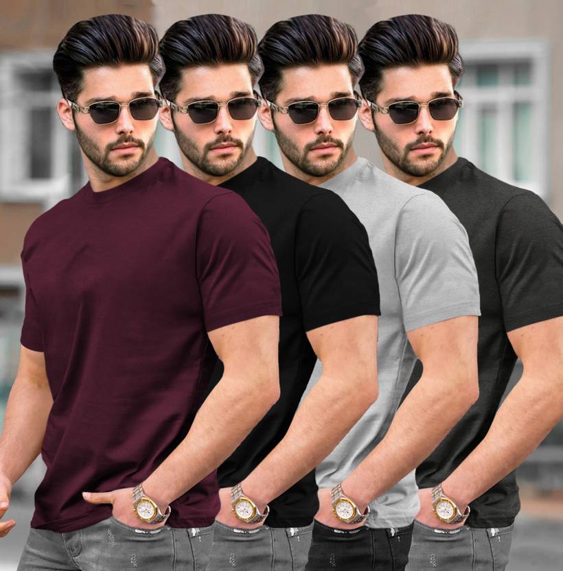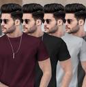 TRIPR Pack of 4 Men Solid Round Neck Cotton Blend Multicolor T-Shirt