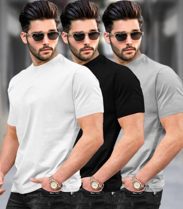 TRIPR Pack of 3 Men Solid Round Neck Cotton Blend Multicolor T-Shirt