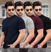 TRIPR Pack of 4 Men Solid Round Neck Cotton Blend Multicolor T-Shirt