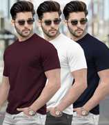 Switch up your everyday wardrobe with this trending t-shirt from TRIPR. Ideal to wear for all seasons, this versatile t-shirt features a Plain Round Neck and Half sleeves. Style it with a pair of straight-fit denims and white shoes to complete your outfit. Regular fit. Comfortable essential with Solid pattern