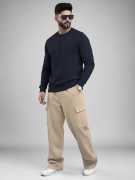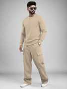 Stay on-trend and comfortable with this stylish TRIPR full sleeve Round Neck perfectly paired with baggy cargo pants. The Sweatshirt features a sleek zip-up neckline that adds a sporty, modern touch, while its relaxed fit ensures all-day comfort. The TRIPR cargo pants come with a loose, baggy silhouette and multiple utility pockets, offering the ideal combination of function and fashion. Whether you're heading out for streetwear-inspired looks, traveling, or enjoying a laid-back weekend, this outfit delivers a bold blend of contemporary style and everyday practicality - only from TRIPR.A Cargo plain baggy tracksuit typically consists of a loose-fitting, unadorned Sweatshirt and matching pants, usually made from soft, comfortable materials like cotton blends.