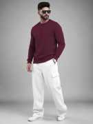Stay on-trend and comfortable with this stylish TRIPR full sleeve Round Neck perfectly paired with baggy cargo pants. The Sweatshirt features a sleek zip-up neckline that adds a sporty, modern touch, while its relaxed fit ensures all-day comfort. The TRIPR cargo pants come with a loose, baggy silhouette and multiple utility pockets, offering the ideal combination of function and fashion. Whether you're heading out for streetwear-inspired looks, traveling, or enjoying a laid-back weekend, this outfit delivers a bold blend of contemporary style and everyday practicality - only from TRIPR.A Cargo plain baggy tracksuit typically consists of a loose-fitting, unadorned Sweatshirt and matching pants, usually made from soft, comfortable materials like cotton blends.